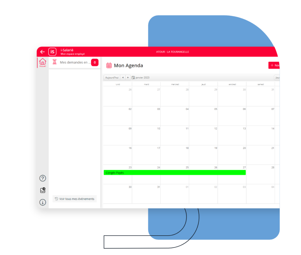 - Gérez des événements : validation et saisie des événements de vos salariés et visualisation des plannings