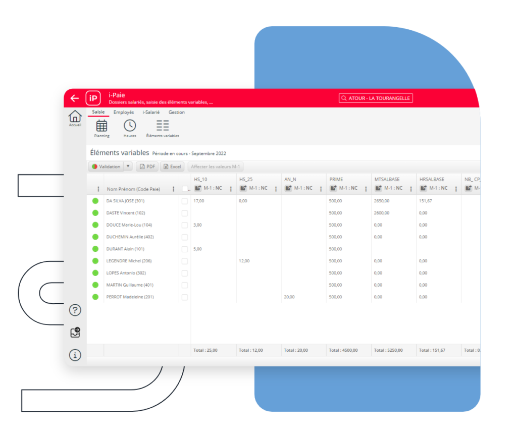 - Saisissez les heures et éléments variables de paie